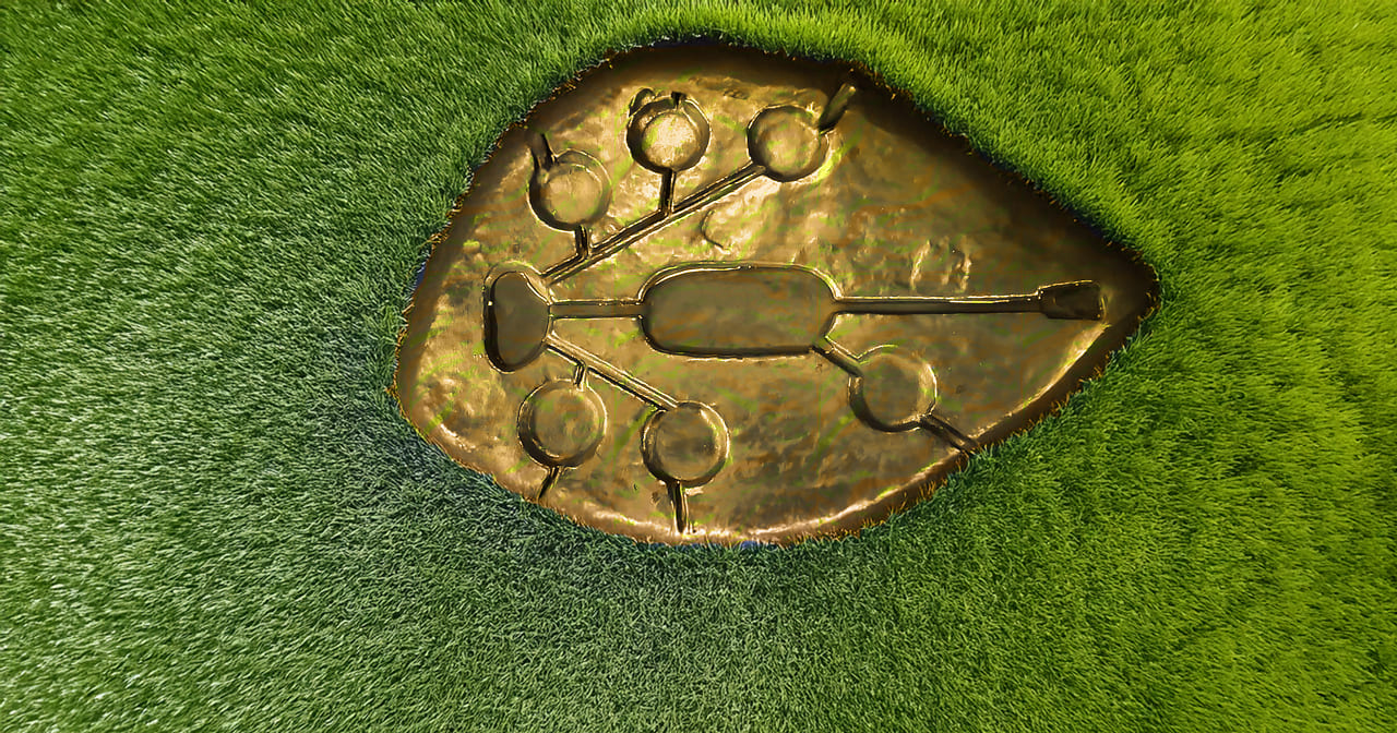 酒船石を本来の形状に復元すると下のようになるようです。豪華に金箔を貼ってみました。